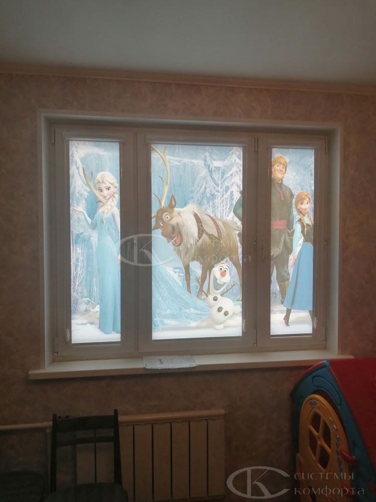 Рулонные шторы с рисунком универсальны. Сложно найти помещение, где они будут выглядеть нелепо и неуместно. На ткань можно нанести практически любое изображение, будь то персонажи из мультипликационного фильма или строгий офисный принт.